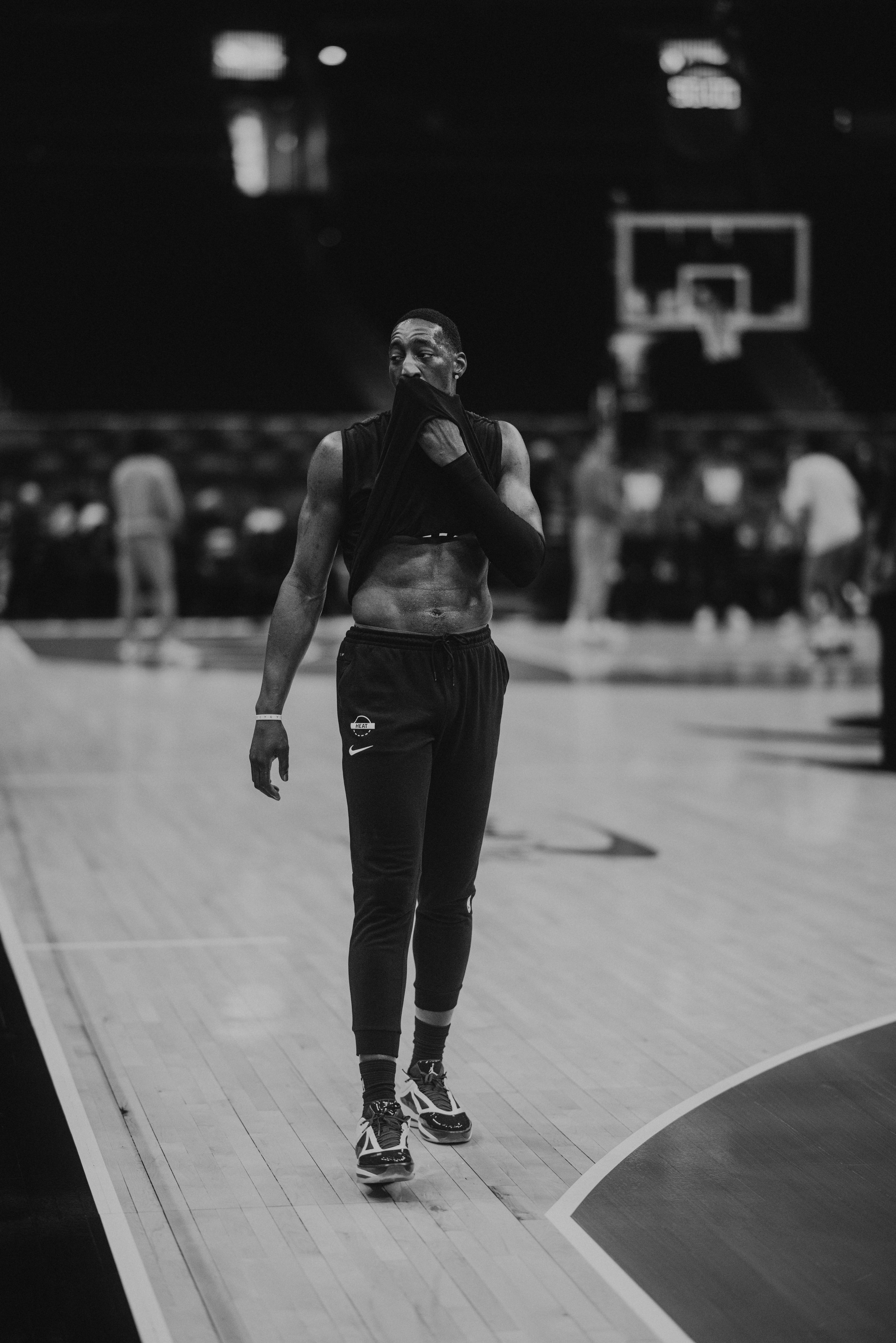 Miami Heat star Bam Adebayo worked up a good sweat before tip-off versus the Wizards.