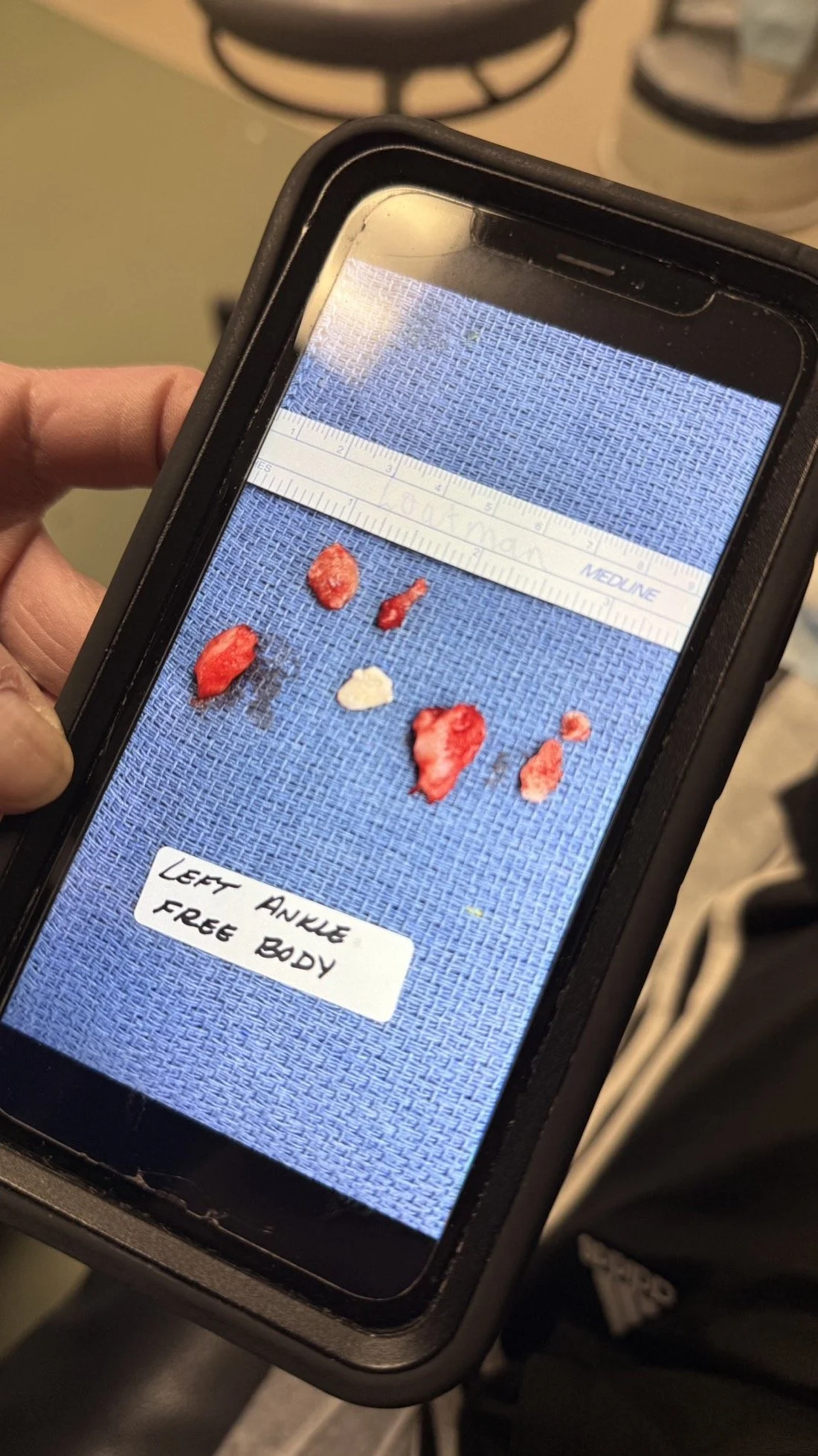 At my first follow-up, she showed me a photo of what she had removed, and I was, to say the least, shocked. These 7 bone fragments were causing havoc in the joint. It was so painful, and I wouldn’t wish it on anyone!